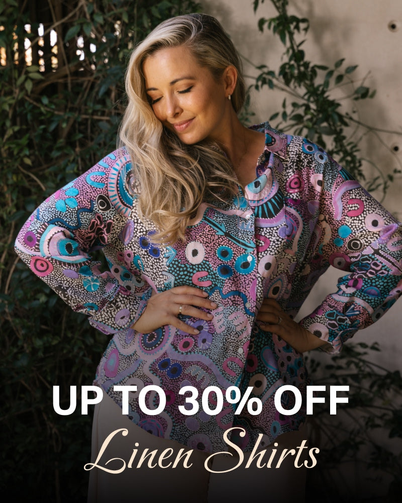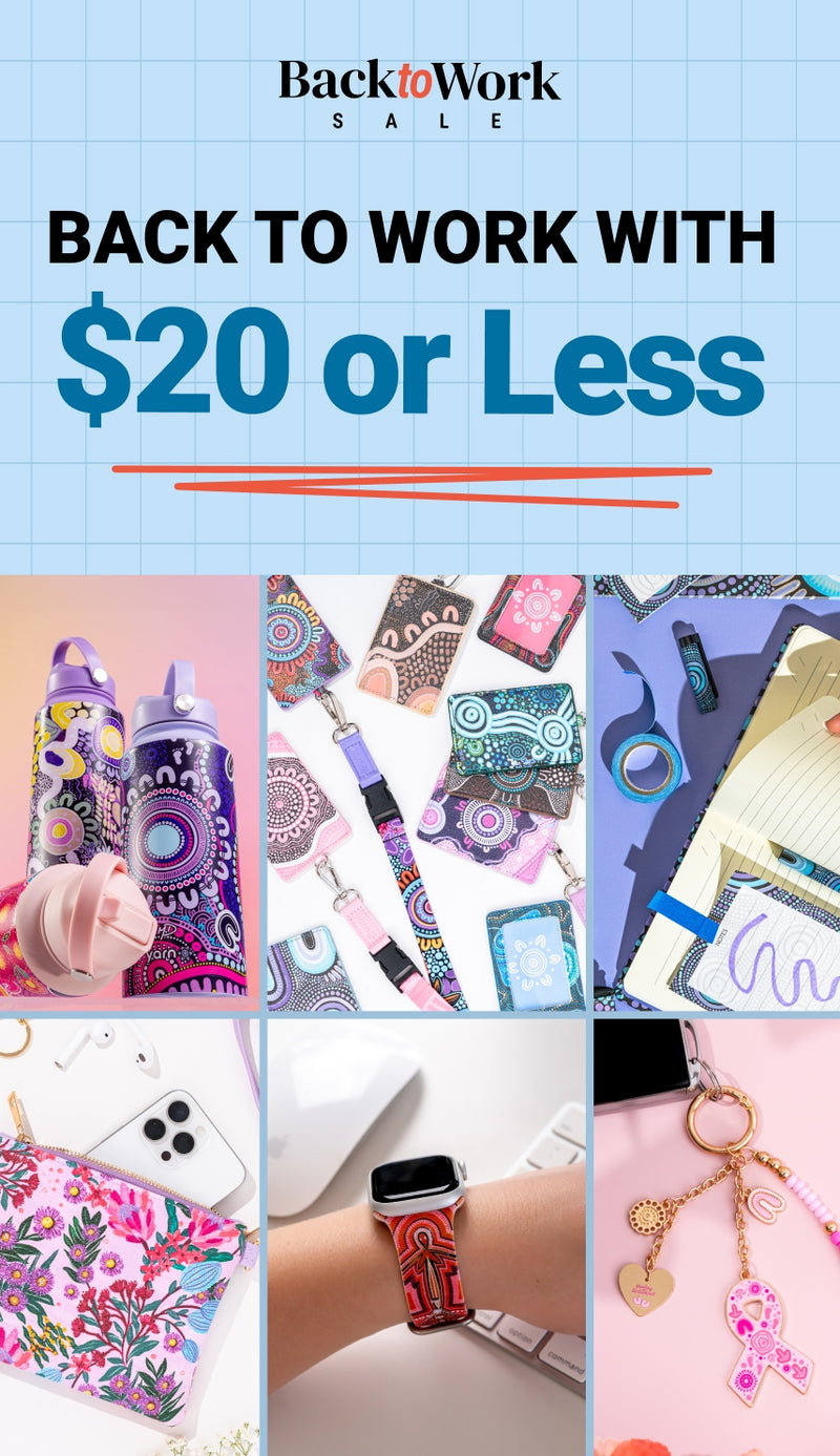 We collaborate with a large community of First Nations artists from across Australia, each bringing their own unique and authentic artistic style. The foundation of partnerships is respect, empowerment, and celebration, with royalties paid to artists on every purchase – supporting long-term career growth and creativity. Discover and learn about artists here.