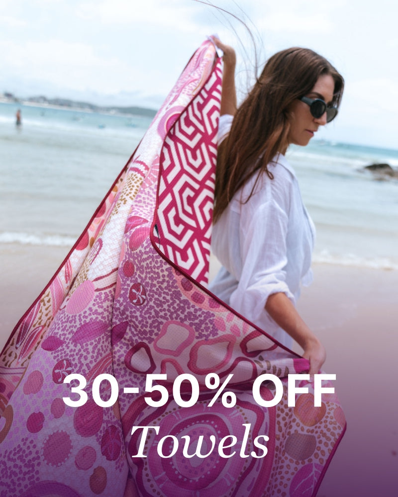 We collaborate with a large community of First Nations artists from across Australia, each bringing their own unique and authentic artistic style. The foundation of partnerships is respect, empowerment, and celebration, with royalties paid to artists on every purchase – supporting long-term career growth and creativity. Discover and learn about artists here.