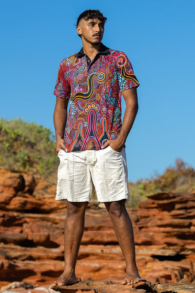 Our Indigenous art long-sleeved polo shirts are an absolute hit amongst our buyers, for the unique indigenous artists designs they bear that our customers love. Our polo tees crafted from excellent quality post-consumer recycled polyester are also loved by our customers and a great add on to your wardrobe. Not to mention, they are also moisture-wicking, odour resistant and antimicrobial. Our unconventional take on shirts, offered by Kingston Grange, are crafted from bamboo fibre and are popular amongst our customers, for good reason. They are exceptionally breathable and comfortable to be in and come in a pleasant range of unique aboriginal artists artworks that are suitable for any occasion  and style.
