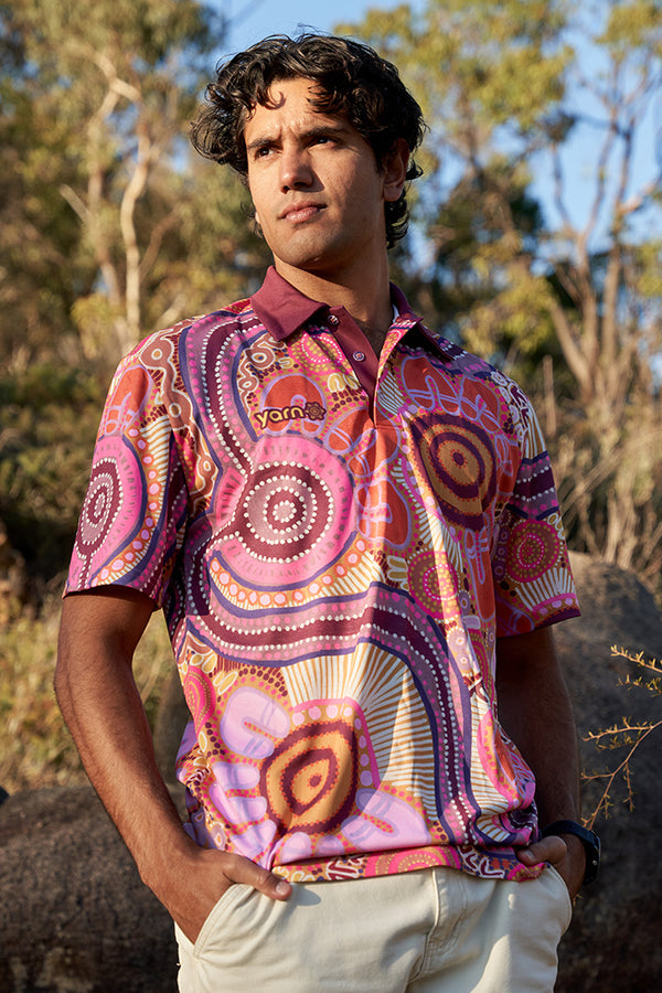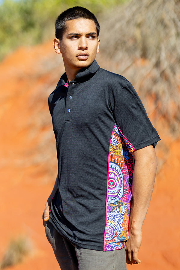 Our Indigenous art long-sleeved polo shirts are an absolute hit amongst our buyers, for the unique indigenous artists designs they bear that our customers love. Our polo tees crafted from excellent quality post-consumer recycled polyester are also loved by our customers and a great add on to your wardrobe. Not to mention, they are also moisture-wicking, odour resistant and antimicrobial. Our unconventional take on shirts, offered by Kingston Grange, are crafted from bamboo fibre and are popular amongst our customers, for good reason. They are exceptionally breathable and comfortable to be in and come in a pleasant range of unique aboriginal artists artworks that are suitable for any occasion  and style.