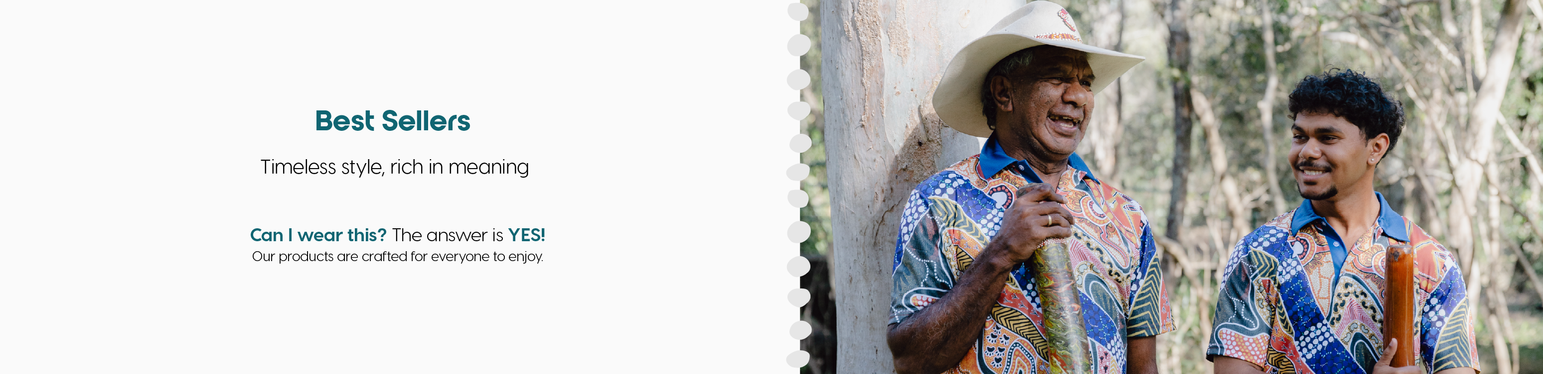 Yarn Marketplace’s website is easily navigable, and we conveniently feature our top-selling indigenous art fashion items for men, exclusively on a single web page of our website. Put together exclusively to bring to you our customer’s most-coveted favourite items, our Men’s Bestsellers range includes a wide range of products from accessories and clothing items to headwear. Head on over to our website to grab our customers’ most loved long-sleeved polos, gym shorts, hats and jerseys. We also think that this is the best section to shop if you are looking to get indigenous art clothes as a present for someone, as it makes for a basically foolproof way of finding something the receiver is sure to love.