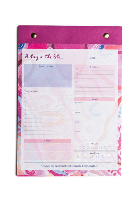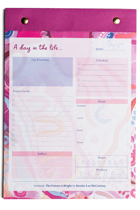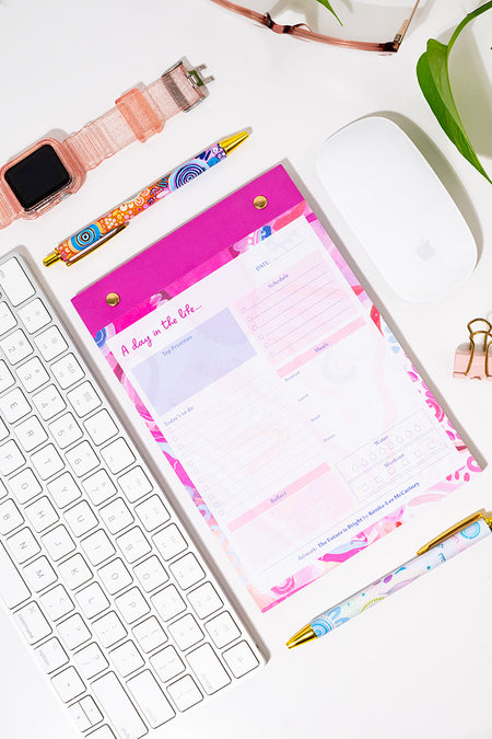 This practical daily planner has all of your organisational needs covered! Featuring section for your to-do list, your goals, notes, reflections, plus your water and food intake to help keep your hydrated and nourished! Available in a range of designs from First Nations artists, you're sure to find your favourite to add some beauty to your work or study.