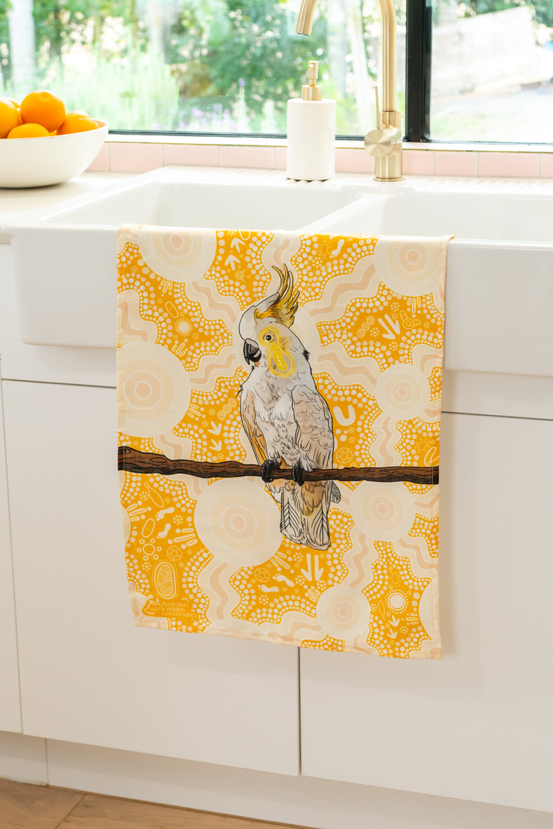Cockatoo (Djarring) 'Australian Wildlife Conservancy' Linen Blend Tea Towel