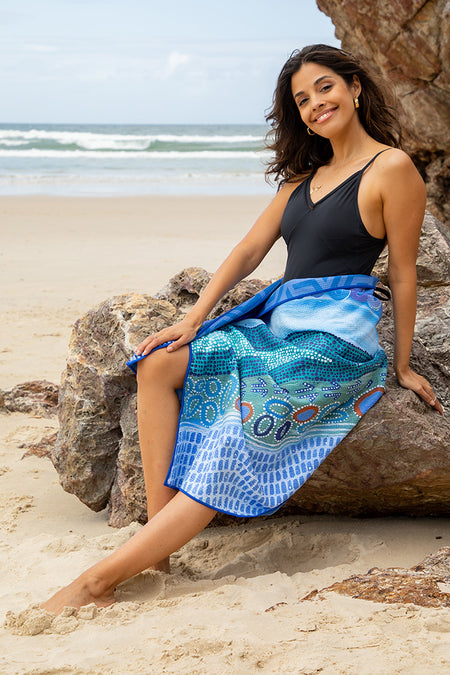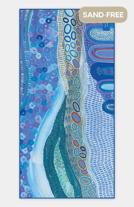 Elevate your next trip to the shore with our luxurious Sand-Free Beach Towels, each featuring stunning artwork by First Nations artists. More than just a towel, they’re a vibrant canvas that carries unique stories of artwork and creativity. Designed to bring comfort and meaning to your day, they’re the perfect companion for relaxing by the water while celebrating artistry in an ally-friendly way.