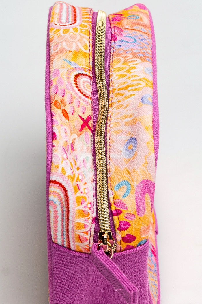 Our stunning, fan-favourite beauty bags are now available in fresh designs from the bright and beautiful Kenita-Lee McCartney. With durable canvas material, a water resistant lining and sturdy metal zippers, these bags are perfect for storage and travel for your beauty products, makeup, toiletries and more! Softly structured and cushioned to protect your valuables.