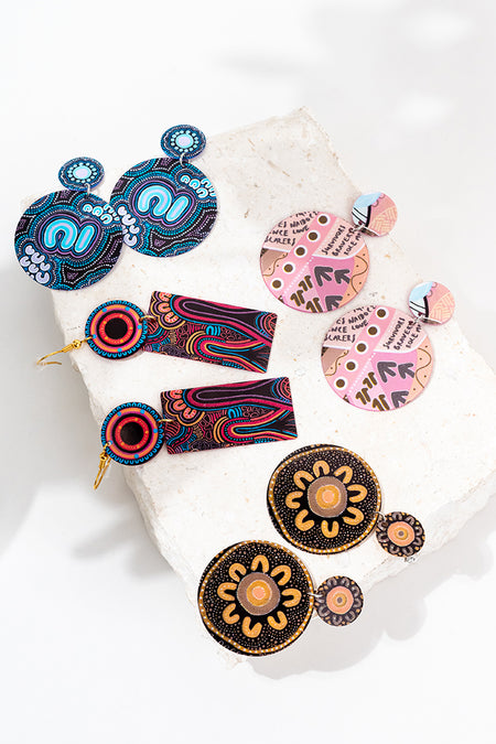 We collaborate with a large community of First Nations artists from across Australia, each bringing their own unique and authentic artistic style. The foundation of partnerships is respect, empowerment, and celebration, with royalties paid to artists on every purchase – supporting long-term career growth and creativity. Discover and learn about artists here.