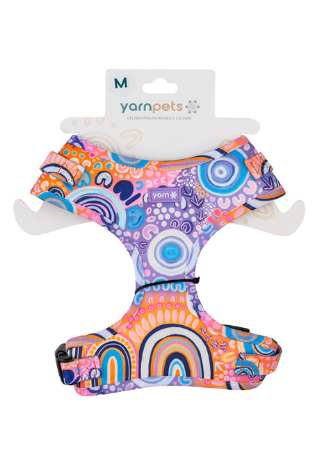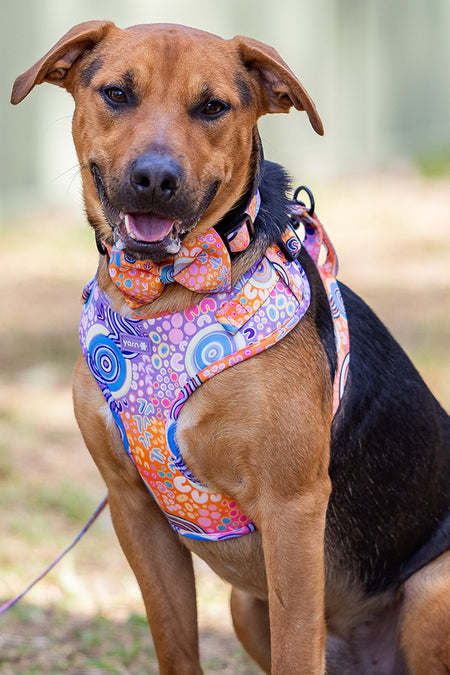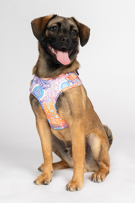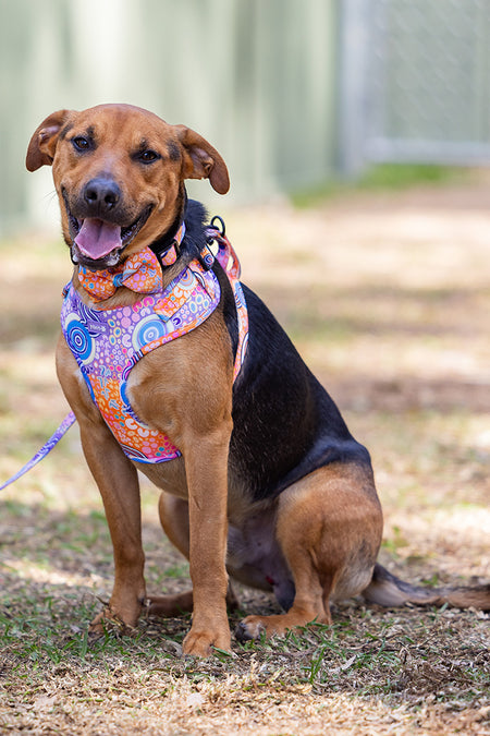 Fabulously printed with First Nations artworks, our harnesses are beautifully bold. With wide chest coverage and adjustable around the neck and chest, they’re comfortable for your doggies to wear for a good, long walk. Complete the look with a Yarn leash or bandana, available in the same artwork.