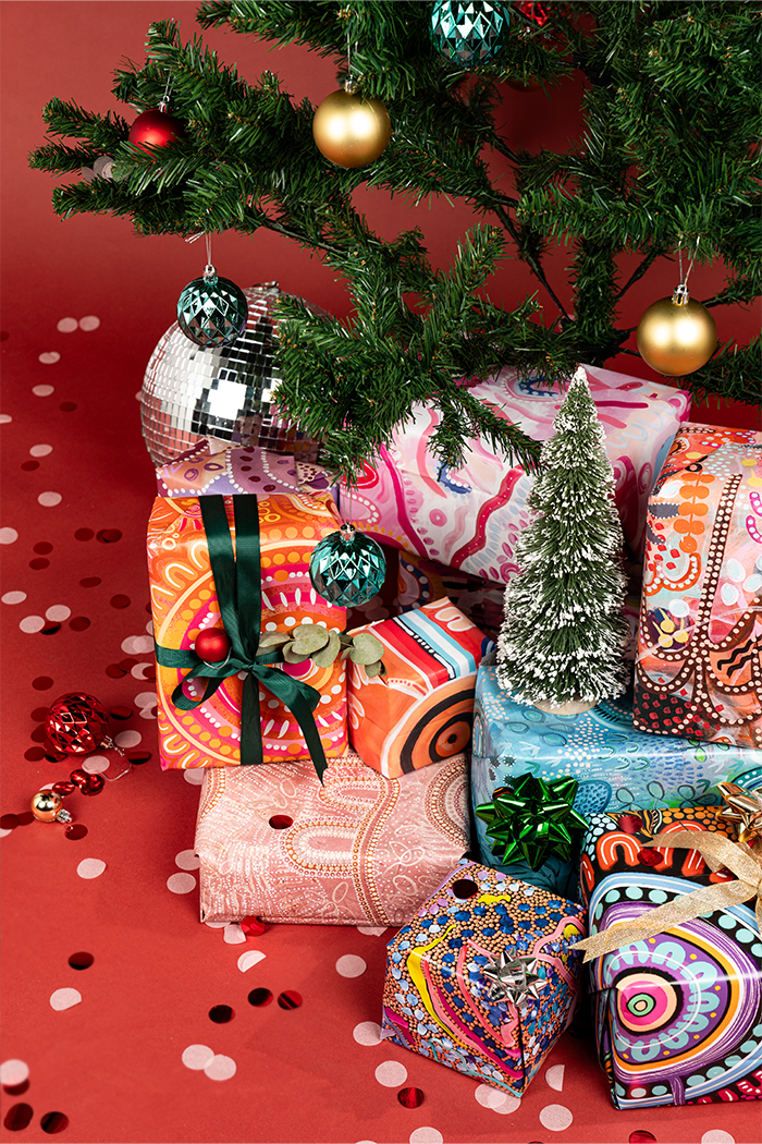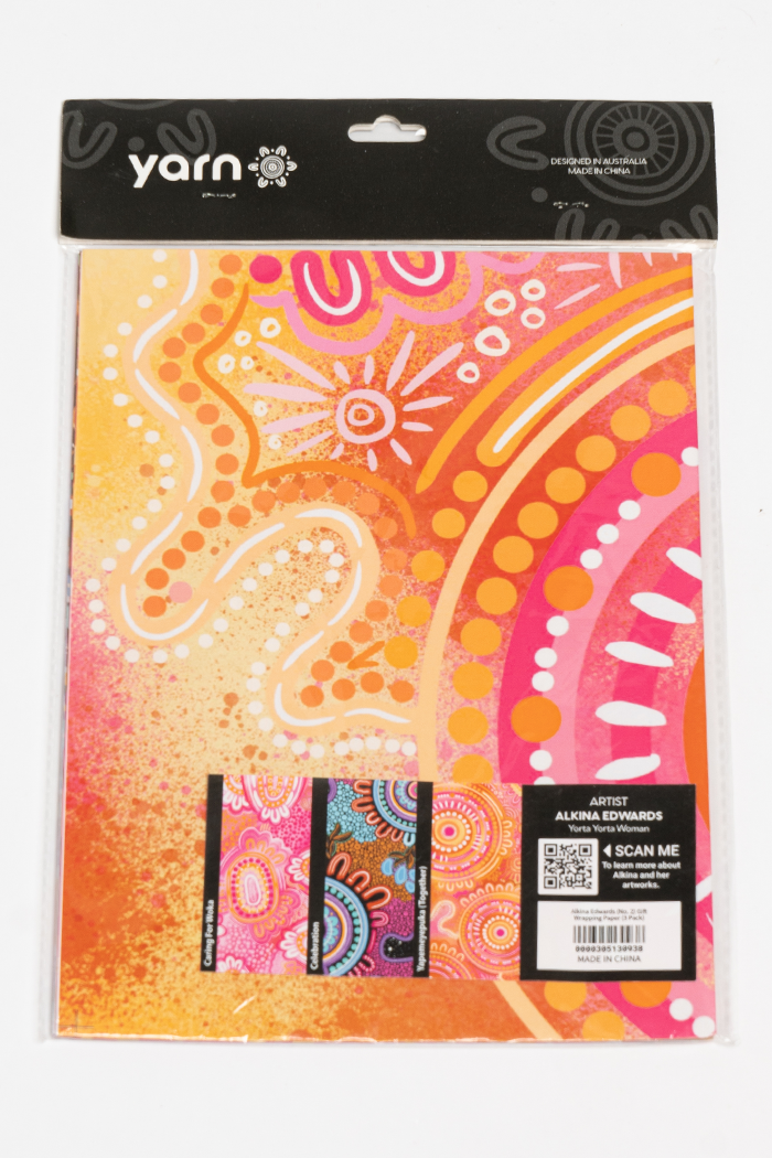 Make your gift giving truly special with our beautiful wrapping paper! Featuring incredible First Nations artwork, this paper is not only a vibrant piece of art but an essential piece of stationery all year round. It’s perfect for birthdays, holidays and parties so get wrapping! This set of three different designs ensure you have enough for everyone.