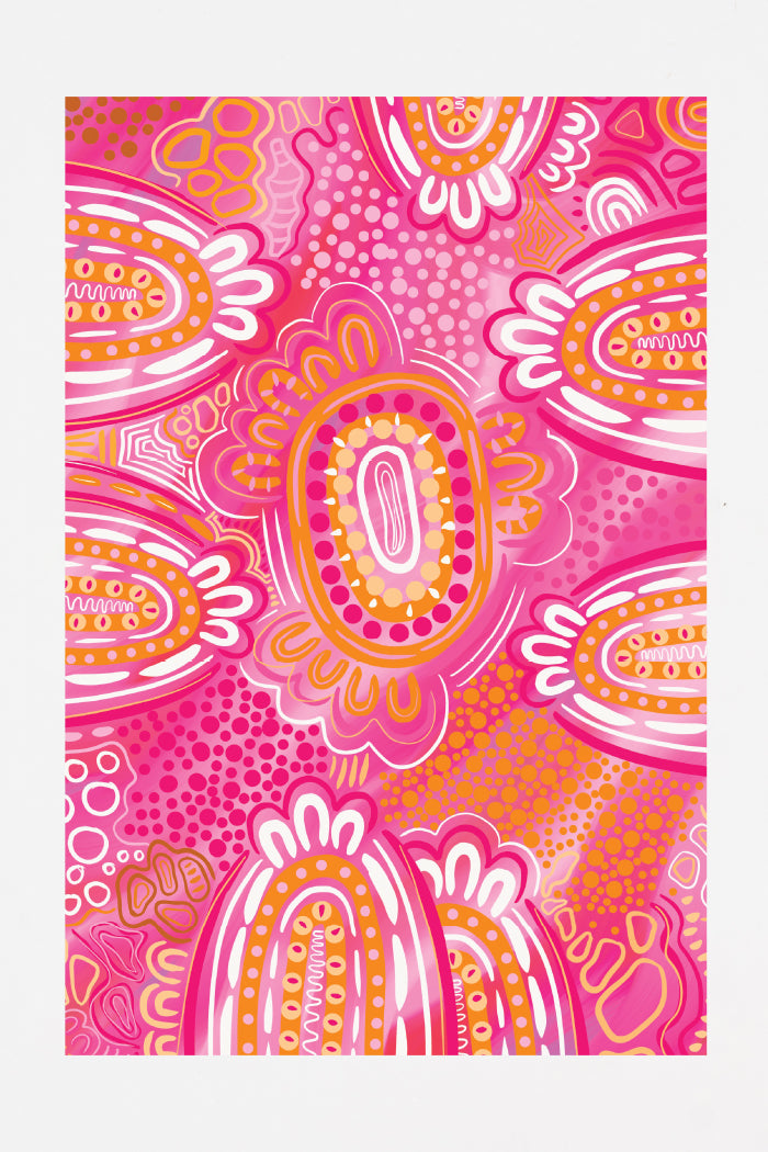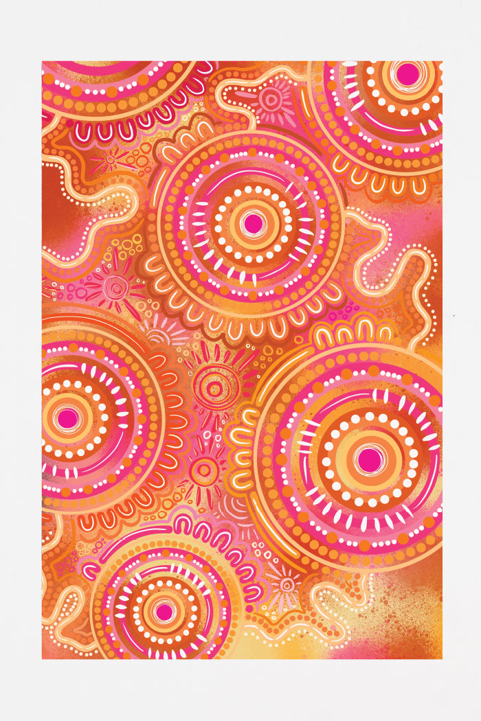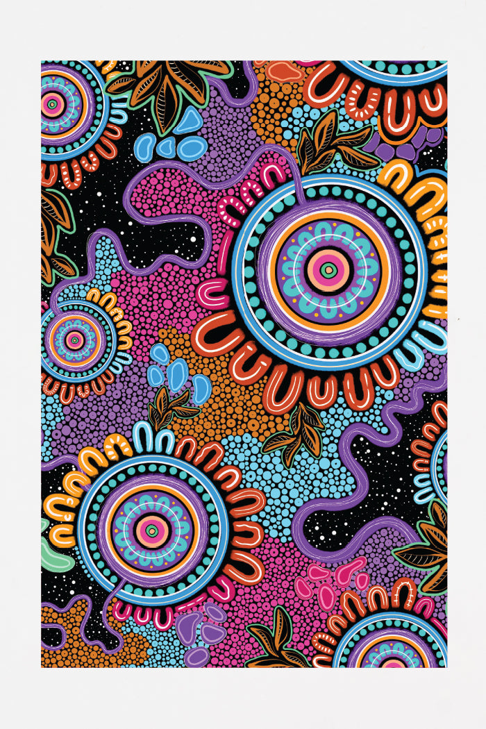 We collaborate with a large community of First Nations artists from across Australia, each bringing their own unique and authentic artistic style. The foundation of partnerships is respect, empowerment, and celebration, with royalties paid to artists on every purchase – supporting long-term career growth and creativity. Discover and learn about artists here.