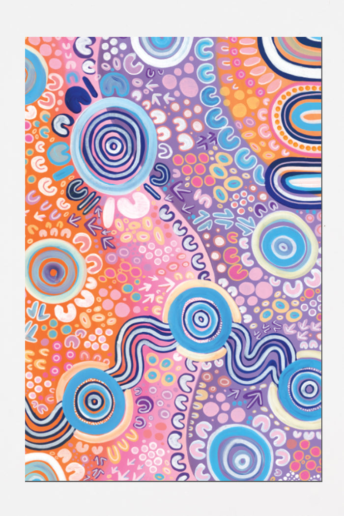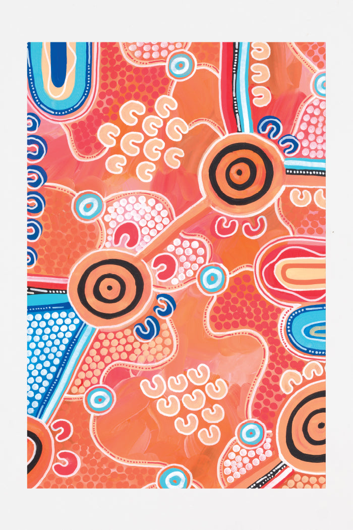 We collaborate with a large community of First Nations artists from across Australia, each bringing their own unique and authentic artistic style. The foundation of partnerships is respect, empowerment, and celebration, with royalties paid to artists on every purchase – supporting long-term career growth and creativity. Discover and learn about artists here.