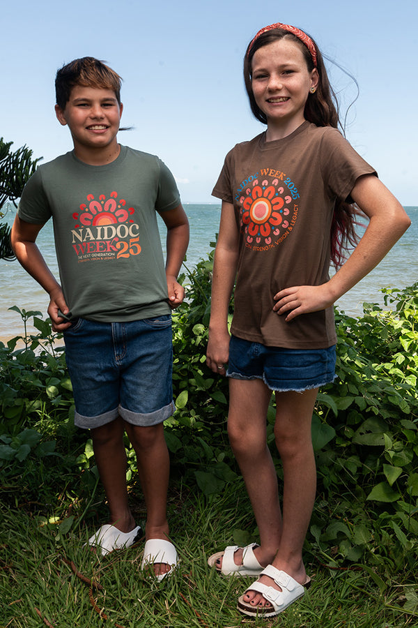 Bundarra has a beautiful range of Kids Tees. Each T-Shirt is composed of 100% cotton and screen printed locally in Brisbane, Australia. The screen printed designs feature artwork and slogans that celebrate Indigenous pride and culture. One of our most popular designs is our NAIDOC 2020 “Always Was, Always Will Be” design which comes in black, white, pink , blue and grey tees. Bundarra also offers Youth Long Sleeve Tees which are great for autumn and winter. Or if your kids love supporting their favourite sporting team we have QLD Maroon Tees and NSW Blue Tees. Most importantly our Kids Tees are very soft, comfortable and allow complete freedom of movement for active kids. Bundarra’s kids tees also make ideal gifts.