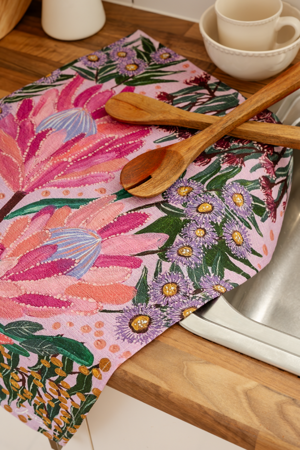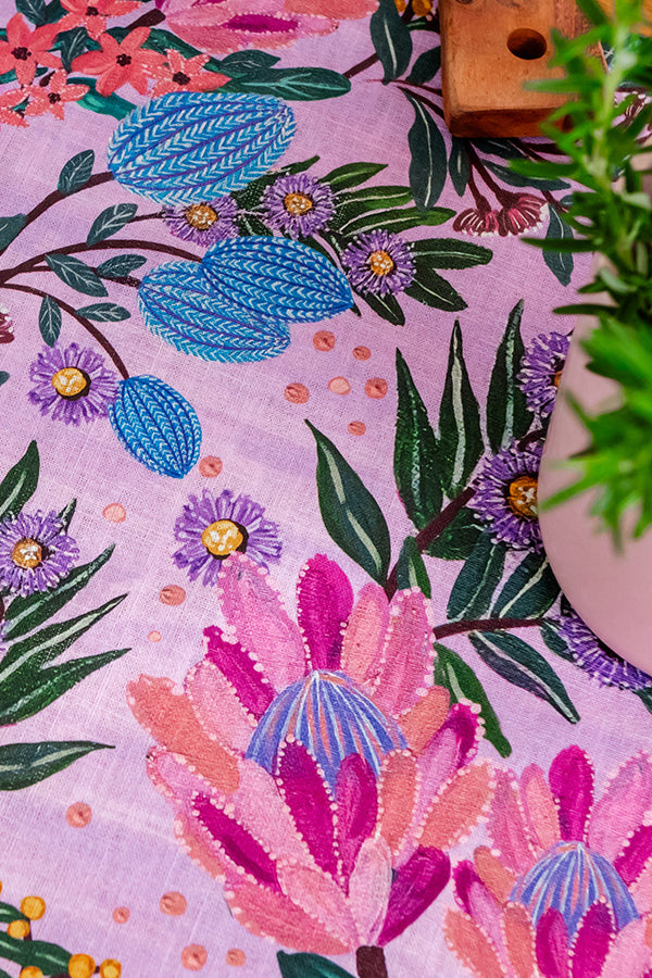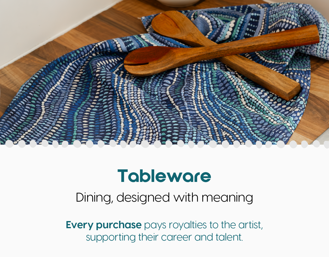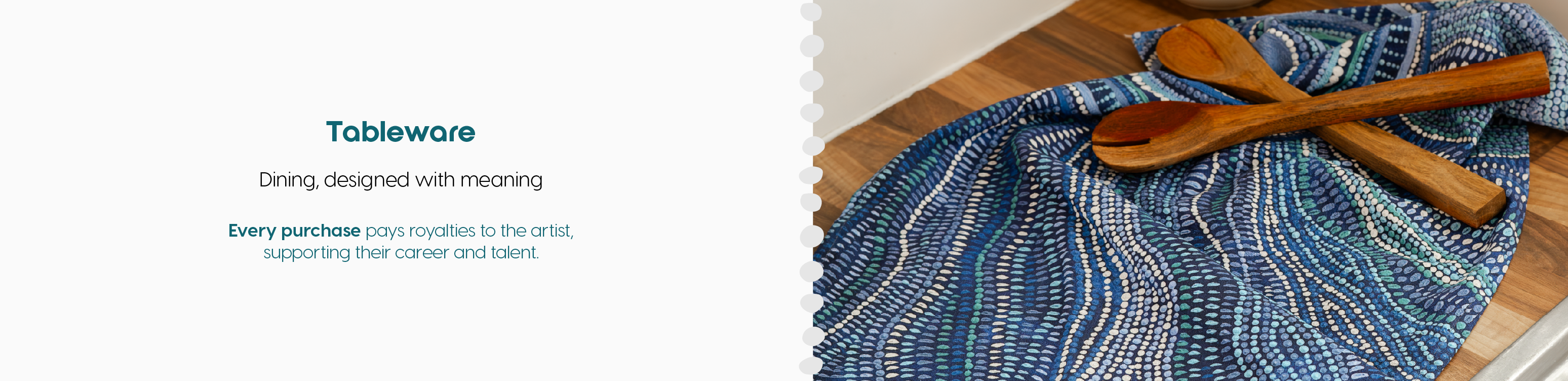 Better World Arts’ cotton tea towels that come in packs of two and three are a hit amongst our customers. Grab some today to add a little pop of colour and vibrancy to your kitchen. Also from Better World Arts, our popular tablecloths come in gorgeous patterns exclusively created by talented Indigenous artists. They are of a 100% linen composition, making them a super durable, sustainable choice. Choose from their range of table runners that feature bright wool chain-stitch designs that you will love having spread over your dining table.