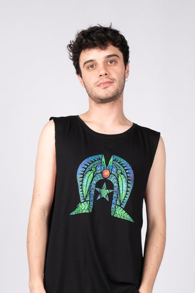 An absolute essential to beat the Australian heat, you won’t be disappointed with our selection of Aboriginal Art singlets & tanks meant for him. Our classic tanks are crafted from a luxe cool-dry mesh polyester fabric with moisture-wicking properties, making them just right for gym sessions. Our premium range of singlets are made out of an comfortable, post-consumer recycled polyester (from plastic bottles) composition, that is perfect for the summer months. These numbers are also moisture-wicking and have odour resistant and antimicrobial properties. Grab one today to do your own part in positively impacting our planet, with absolute style. Lore Clothing Co.’s muscle tee singlets with deeply cut armholes, sports a fit that complements your form, that can easily be up-sized generously for a looser, relaxed fit.