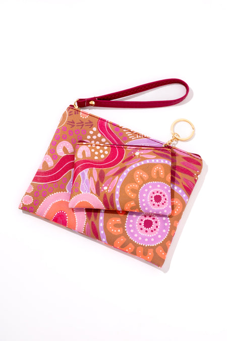 This practical bundle contains a classic purse and a handy coin purse. Available in an array of beautiful prints designed by Caitlyn Davies-Plummer, a proud Barkindji artist.