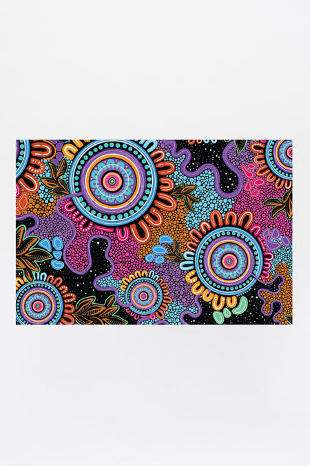 We collaborate with a large community of First Nations artists from across Australia, each bringing their own unique and authentic artistic style. The foundation of partnerships is respect, empowerment, and celebration, with royalties paid to artists on every purchase – supporting long-term career growth and creativity. Discover and learn about artists here.