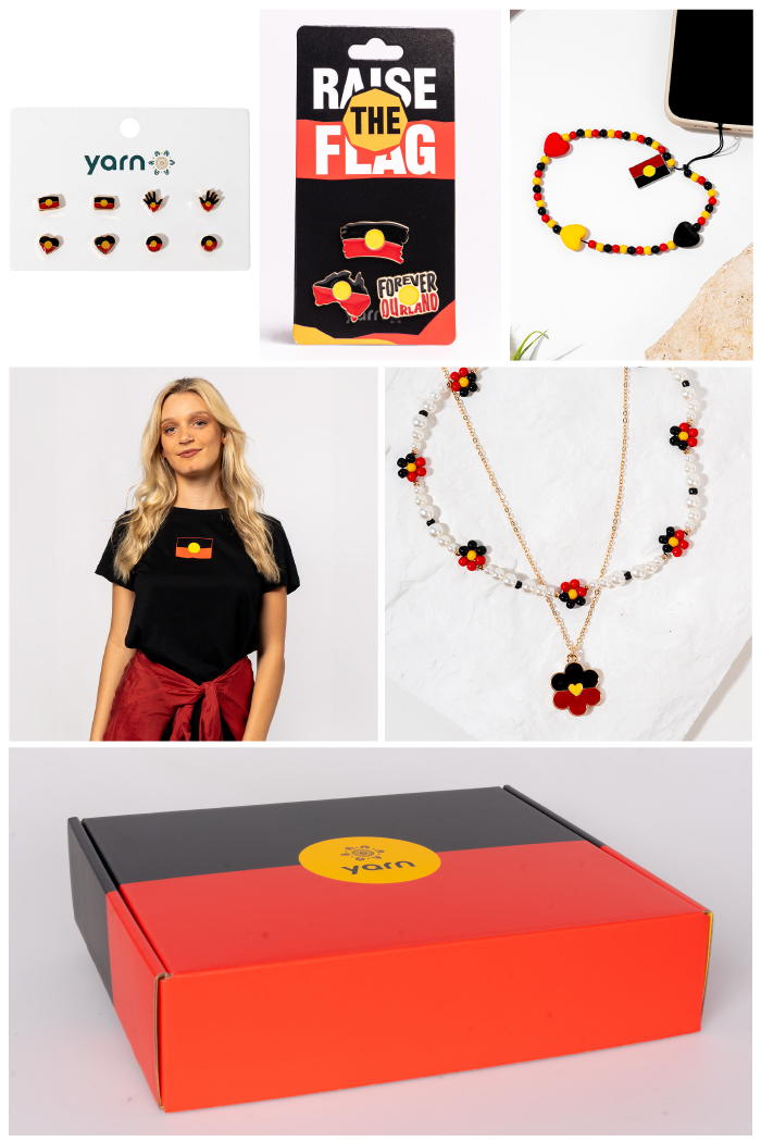 This bundle is from our ‘Raise the Flag’ collection: a range that celebrates the Aboriginal flag being placed into public hands. Add some beautiful colour and vibrancy to your wardrobe and make a supportive statement.