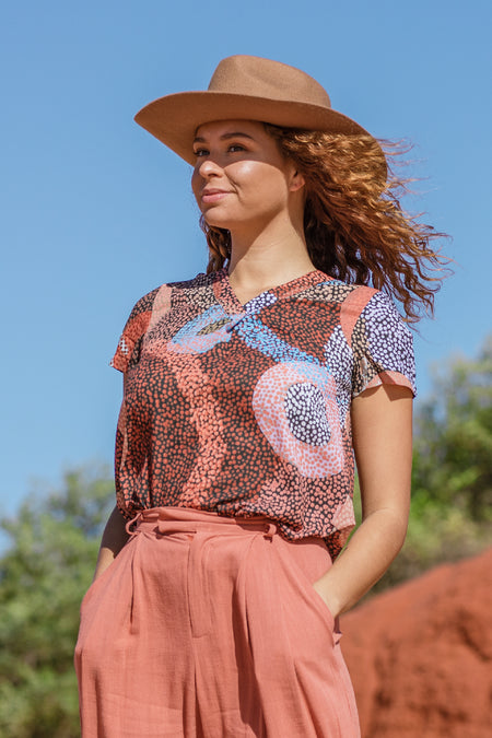Ngarlikurlangu (Circles) V Neck Women's Short Sleeve Blouse