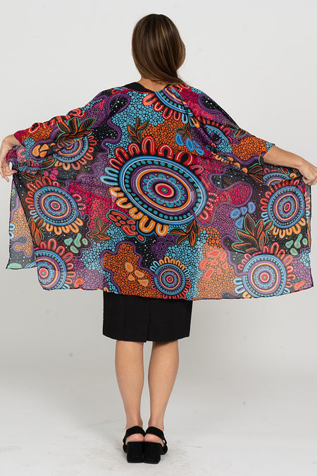 Celebration: A vibrant collection from Yorta Yorta artist Alkina Edwards that represents people from all walks of life coming together to celebrate their cultures. This beautiful design lights up a room with Alkina's signature vibrant digital artwork.
