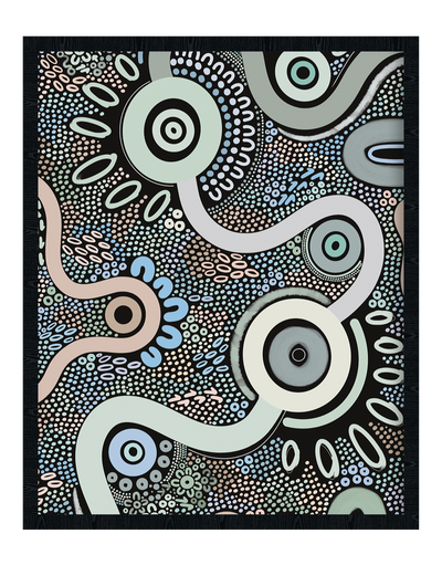 Chloe Little is a Yorta Yorta and Yuin artist whose work reflects her Aboriginal heritage and the rich cultural landscape of her ancestors. Currently living on Dharug land in the Hawkesbury region of New South Wales, Chloe’s art explores themes of identity, heritage, and the ongoing relationship between Aboriginal people and the land and waters.