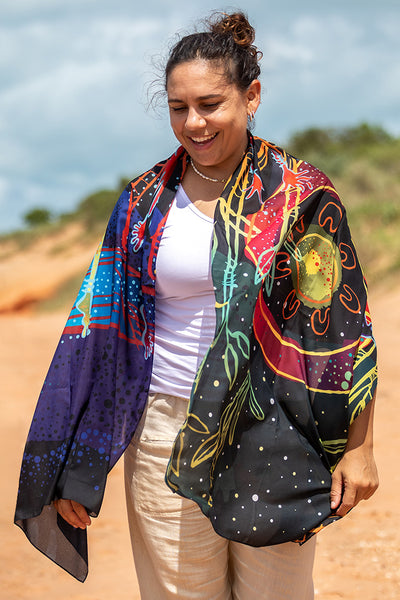 My inspiration for my artwork is my family, my Aboriginal and Torres Strait Islander culture and my tropical surroundings. I’m very influenced by pop culture, animation and modern design. I feel that my artwork is my gift to help others see the beauty of Aboriginal culture, appreciate Indigenous issues, and bring joy to people through colourful art and designs.