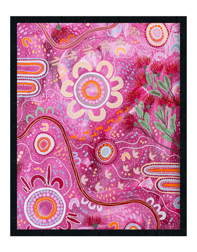 Maddy Barbary Copley is a proud Kureinji woman born in Mildura Victoria. She is living and working on Latje Latje country. Her connection to country runs deep with the red dirt, blue skies and mighty Murray river. Her style is a mix of traditional storytelling and contemporary flare with colours that speak louder than words.