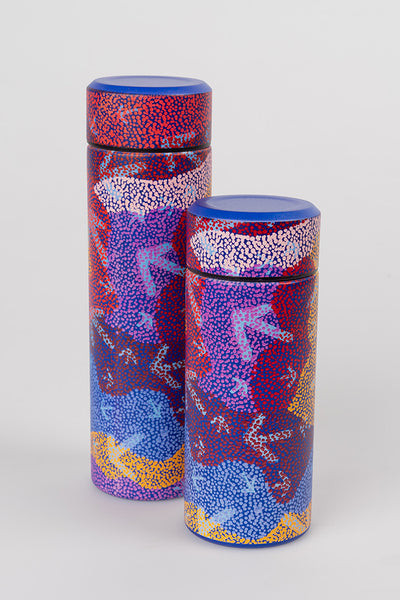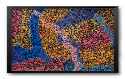 Margaret Nangala Gallagher grew up in Nyirripi, a remote Aboriginal community 290 km from Alice Springs in the NT of Australia. She is the daughter of Pauline Napangardi Gallagher, an artist who has been painting with Warlukurlangu Artists since 2005. Margaret has been painting with Warlukurlangu Artists Aboriginal Corporation, since 2007. Warlukurlangu Artists is an Aboriginal owned and governed art centre located in Yuendumu, and has been providing the residents of Nyirripi with materials to paint since 2005. She paints with her mother and learnt to paint watching her mother and other people in the community painting. She particularly enjoys painting with her mother as it is an opportunity for her and her mother to share their Jukurrpa stories, Dreamings passed down to her by her father and mother and their parents before them for millennia. Margaret paints her Yankirri Jakurrpa (Emu Dreaming) from her father’s side and this Jukurrpa story belongs to Jangala/Jampijinpa men and Nangala/Nampijinpa women.
