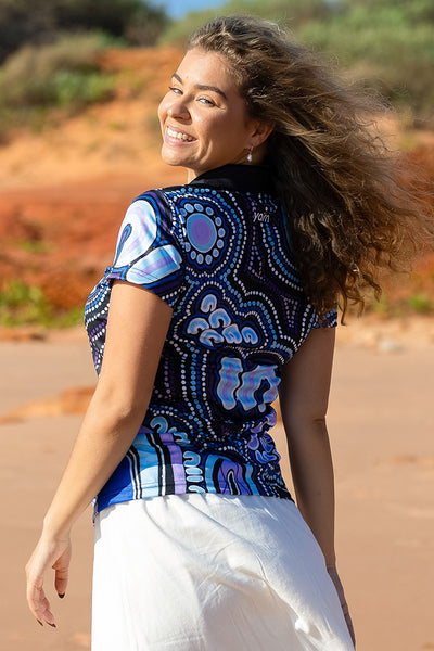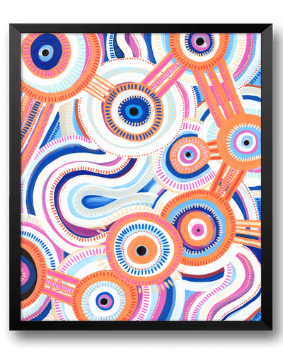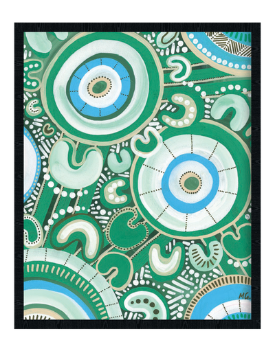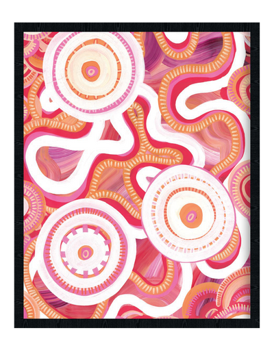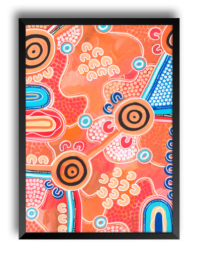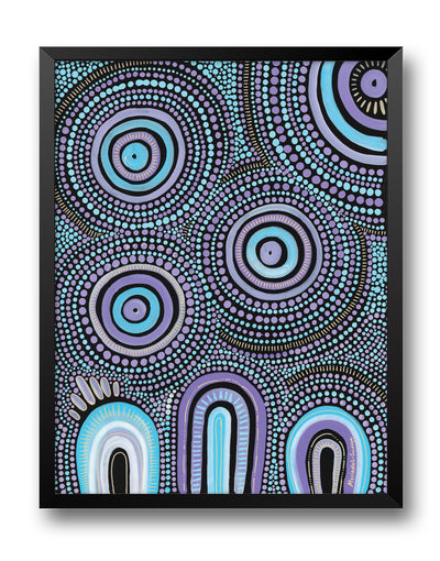 Bayley was born and raised in Warrnambool, Victoria, where she started painting from a young age and learnt from her Elders about traditional storytelling through painting. Now she currently lives on Bunurong country in Melbourne, Victoria.