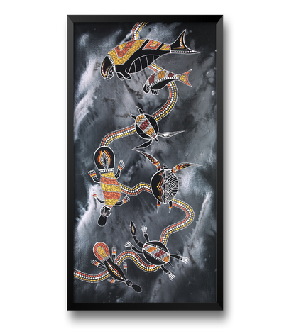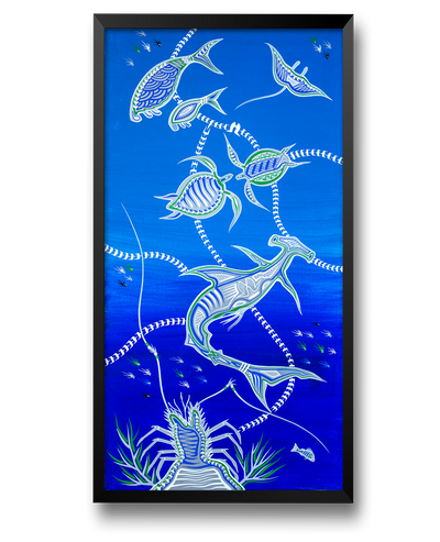 Robert Levi was born in the Torres Strait and grew living in many mainland Aboriginal communities, including Cape York. His first memory of being artistic was from grade three when he took some chalk and drew a large Jurassic Park mural, it was from there that his passion for art and painting began.