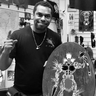 Robert creates art as a way of passing on stories, keeping culture alive and inspiring the younger generation. He is a strong advocate for the sharing of authentic Indigenous art and tackling the many issues that have emerged from fake Indigenous art.
