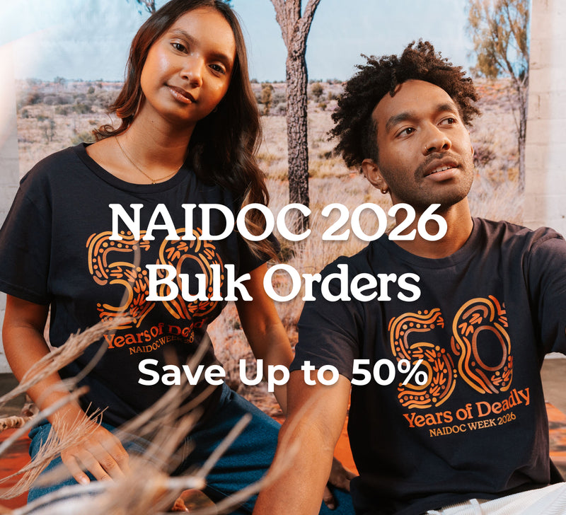 Get organised early for NAIDOC with bulk pricing designed for schools, workplaces and community groups. The first drop is live now, featuring tees and the official Milestone Polo by Amy Kilby, with more artist releases coming soon.