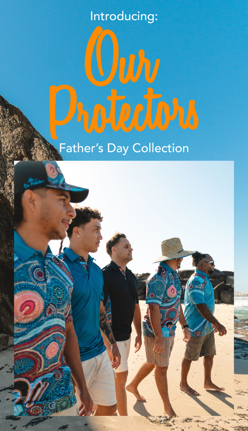 A powerful Father’s Day tribute honouring the strength, love, and legacy of father figures, told through the eyes of proud Bundjalung, Yuggera, and Bidjara artist Steven Bekue. This collection marks Steven’s second Father’s Day collaboration with Yarn, following his Deadly Dads debut in 2023. That same love and spirit now flows through Our Protectors: