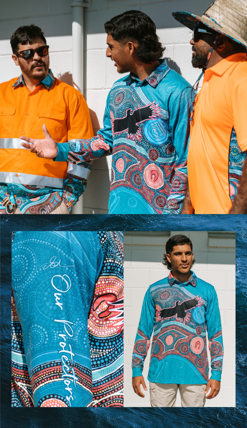 “Our Protectors represents the deep and sacred responsibility that comes with fatherhood. It tells the story of guidance, protection, and respect - values passed down through generations and deeply rooted in Aboriginal culture.” - Steven Bekue