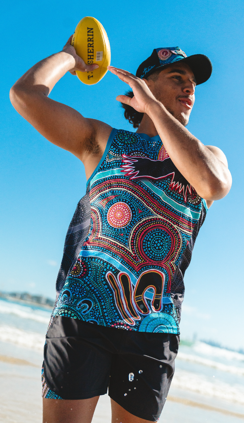“Being a Saltwater man and growing up on the coastal lands of the Bundjalung Nation, I always feel the spiritual connection to the saltwater, and it gives me healing when I’m close to it. What inspired me to begin painting was watching my family members create amazing pieces of Indigenous artwork and I always had a passion for art. My love for art wasn't only because of the strong passion for my Aboriginal culture, it also gives me healing and coping mechanisms to express myself through my artwork. It makes me so happy to be able to teach people about our culture, keeping it strong and alive.”