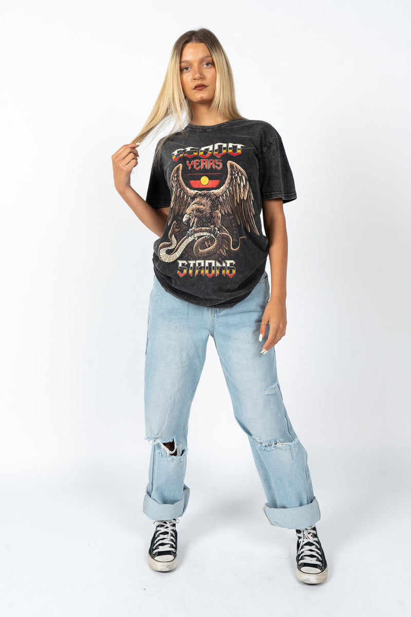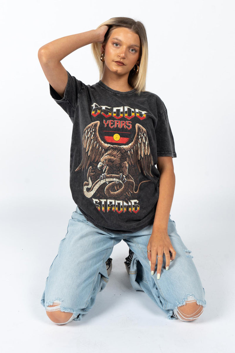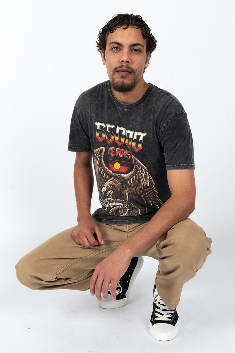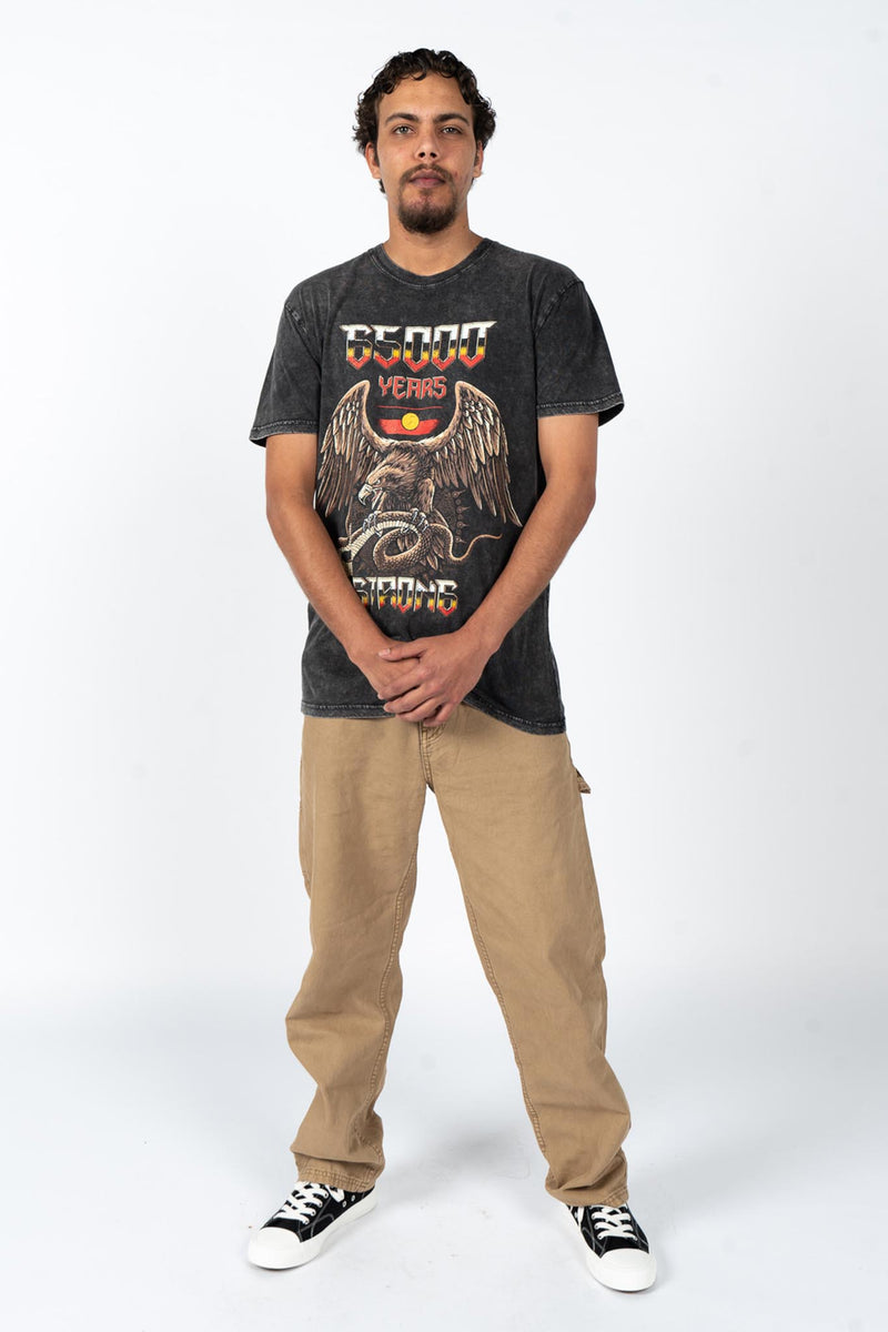 65,000 Years Strong Black Stone Wash Cotton Crew Neck Unisex T-Shirt