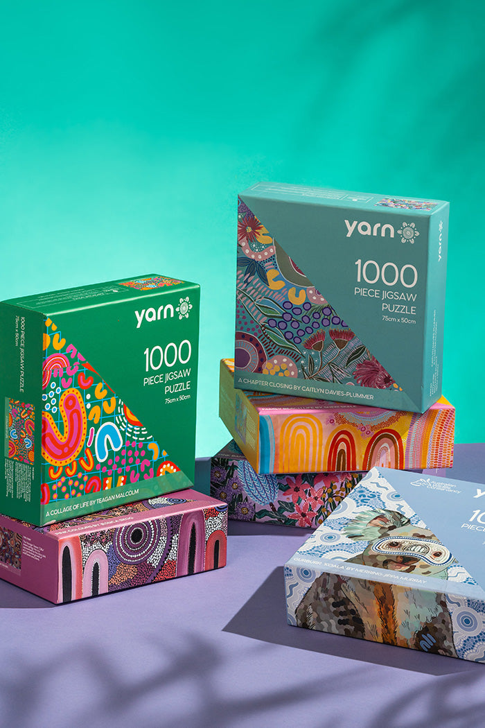 Get creative and have fun with this gorgeous 1000 piece puzzle! Perfect for an afternoon in or a chilled crafts evening with friends. Featuring vibrant First Nations artwork that you can appreciate in larger detail, this puzzle is the perfect addition to your games cabinet or as a gift for those friends who love puzzles.