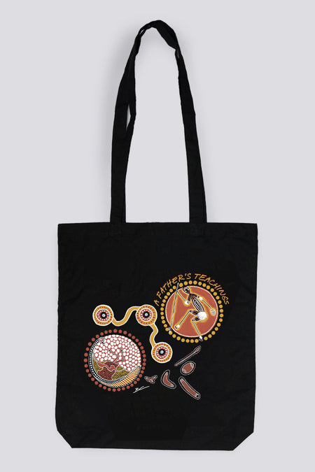A Father's Teachings Black Long Handle Cotton Tote Bag