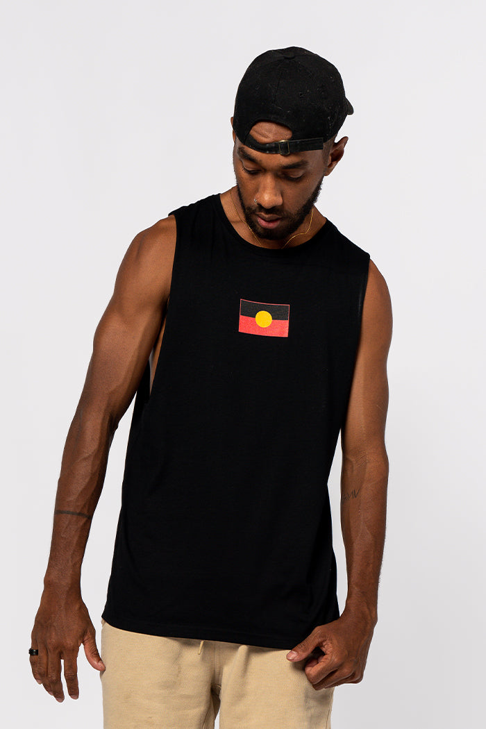 For hot summer days you can’t go past a muscle tee featuring a bold graphic. Our men's tanks are composed of 100% combed cotton, making them super soft, comfortable and durable. Support Indigenous communities, and feel proud wearing the flag of the First People of our beautiful Country.