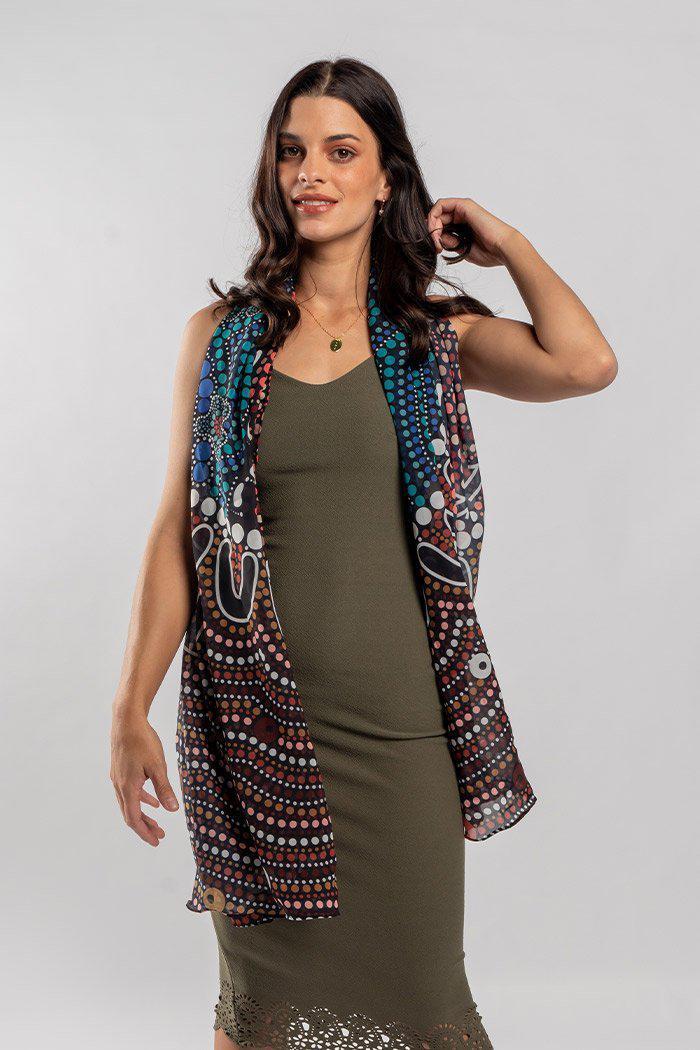We collaborate with a large community of First Nations artists from across Australia, each bringing their own unique and authentic artistic style. The foundation of partnerships is respect, empowerment, and celebration, with royalties paid to artists on every purchase – supporting long-term career growth and creativity. Discover and learn about artists here.