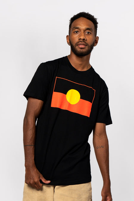 This men’s tee is a part of our ‘Raise the Flag’ collection, a range of products that celebrate the Aboriginal flag finally being freed and placed into public hands.