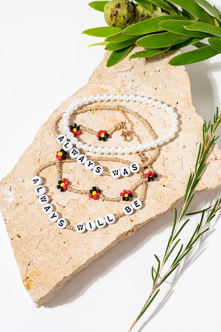 "Always Was, Always Will Be" Aboriginal Flag Flower Beaded Bracelets (4 Pack)
