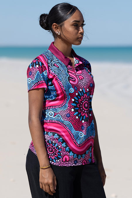 Amy Kilby is a proud Wiradjuri woman from the Riverina NSW. She has always found joy in art, particularly painting and drawing but since found a deep passion in exploring digital art in Indigenous styles. Her impressive use of palettes creates striking artworks in her new polo and clothing collection, inspired by and dedicated to her Miyagan (family). From birth families to chosen families, the people closest to us support us, keep us strong, and lift us up through their love, wisdom, and care.