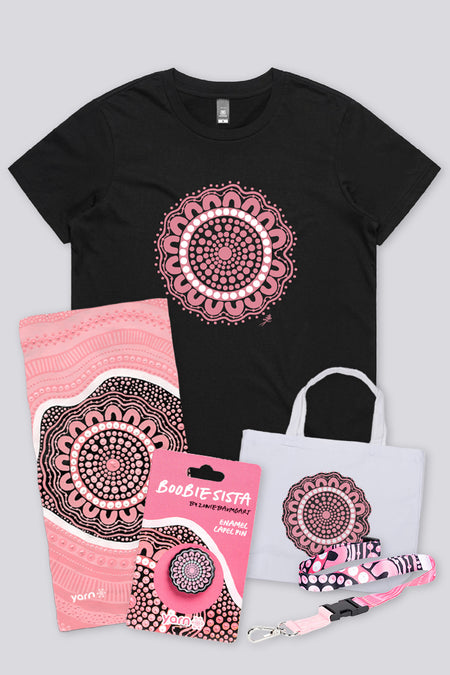 Yarn is proud to partner with the National Breast Cancer Foundation (NBCF) and Kombumerri and Butchulla artist Zowie Baumgart to introduce our limited-edition collection ‘Boobie Sista’. For each product sale from this collection, Yarn is donating $2 to NBCF to support world-class breast cancer research.