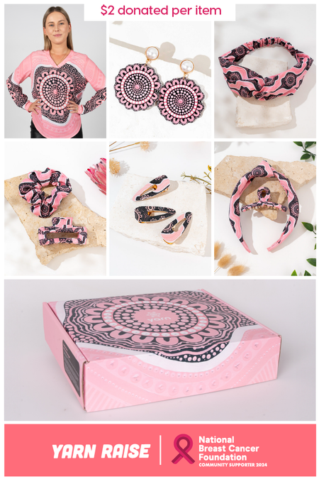 Yarn is proud to partner with the National Breast Cancer Foundation (NBCF) and Kombumerri and Butchulla artist Zowie Baumgart to introduce our limited-edition collection ‘Boobie Sista’. For each product sale from this collection, Yarn is donating $2 to NBCF to support world-class breast cancer research.