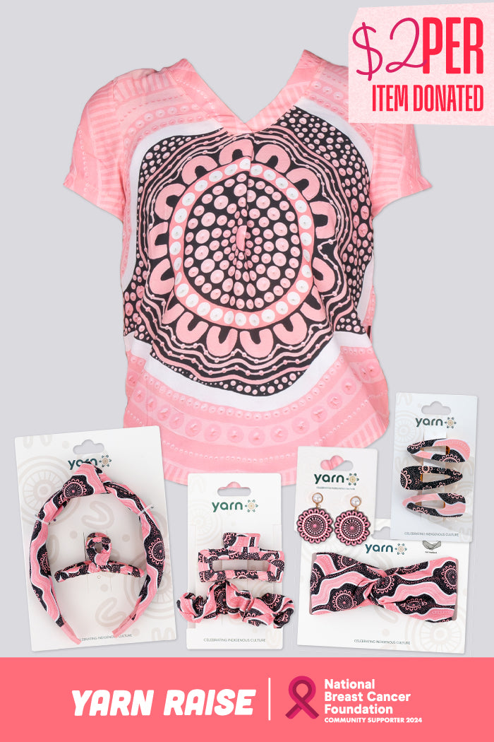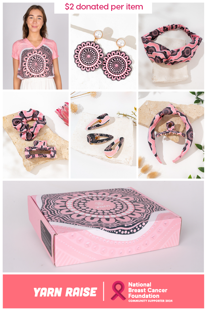 Yarn is proud to partner with the National Breast Cancer Foundation (NBCF) and Kombumerri and Butchulla artist Zowie Baumgart to introduce our limited-edition collection ‘Boobie Sista’. For each product sale from this collection, Yarn is donating $2 to NBCF to support world-class breast cancer research.