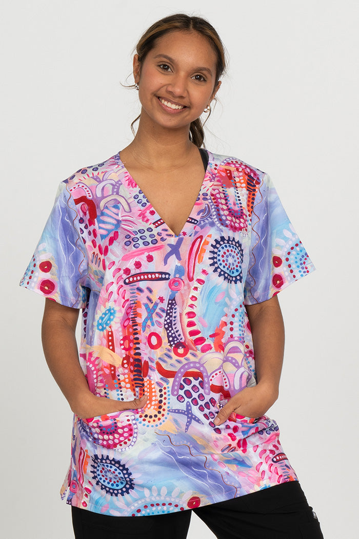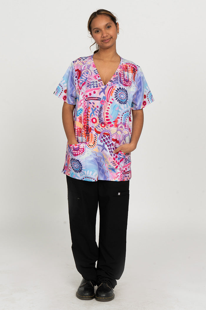 Brighten up long days on your feet caring for those who need it most! Our scrubs feature First Nations artwork printed onto excellent quality workwear that is both practical and beautiful.