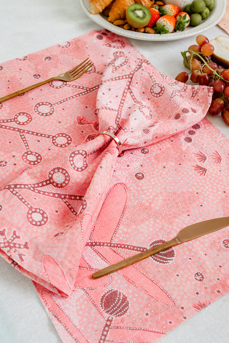 Printed locally in our studio in Meanjin (Brisbane) on natural flax linen, this elegant collection of fine homewares features muted colours in Amanda’s earthy palettes. Perfect for dinner parties, gifts, and adding a touch of natural sophistication around the home and table.
