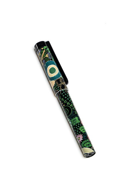 Each black ink pen features a gorgeous piece of artwork from talented First Nations artists around Australia.