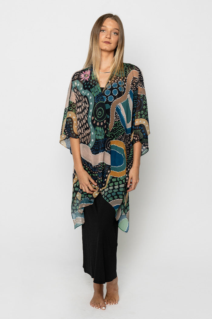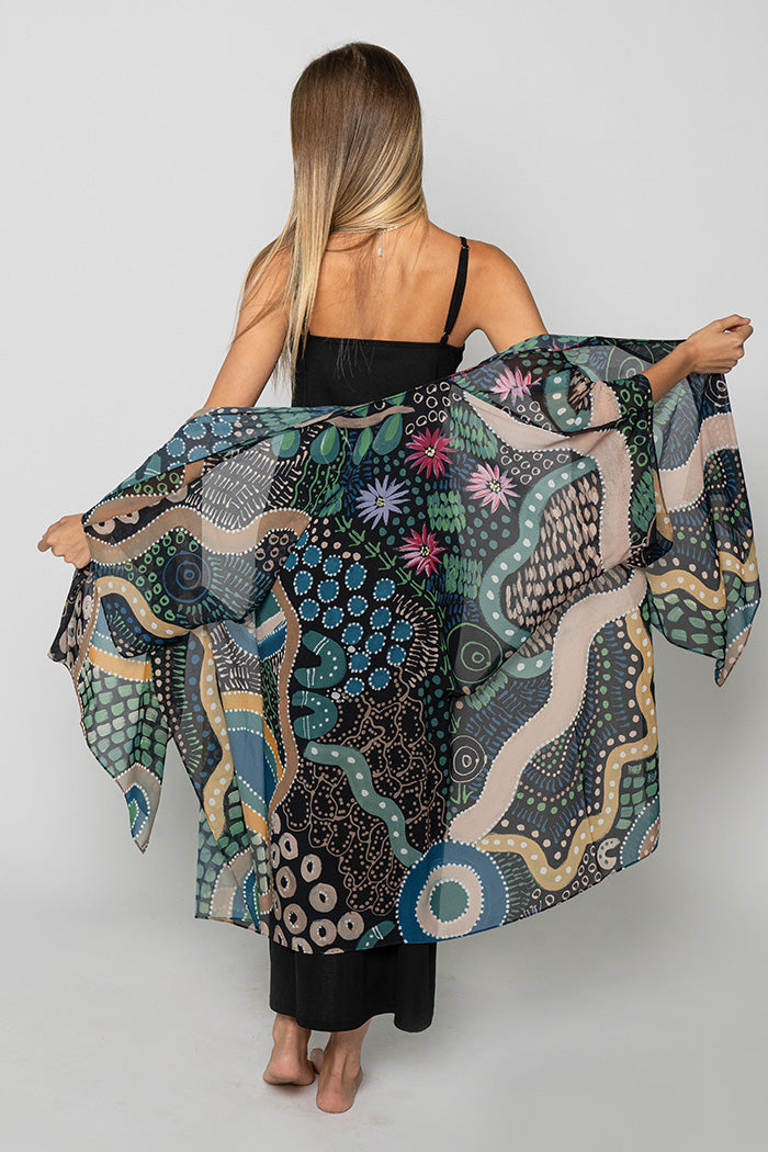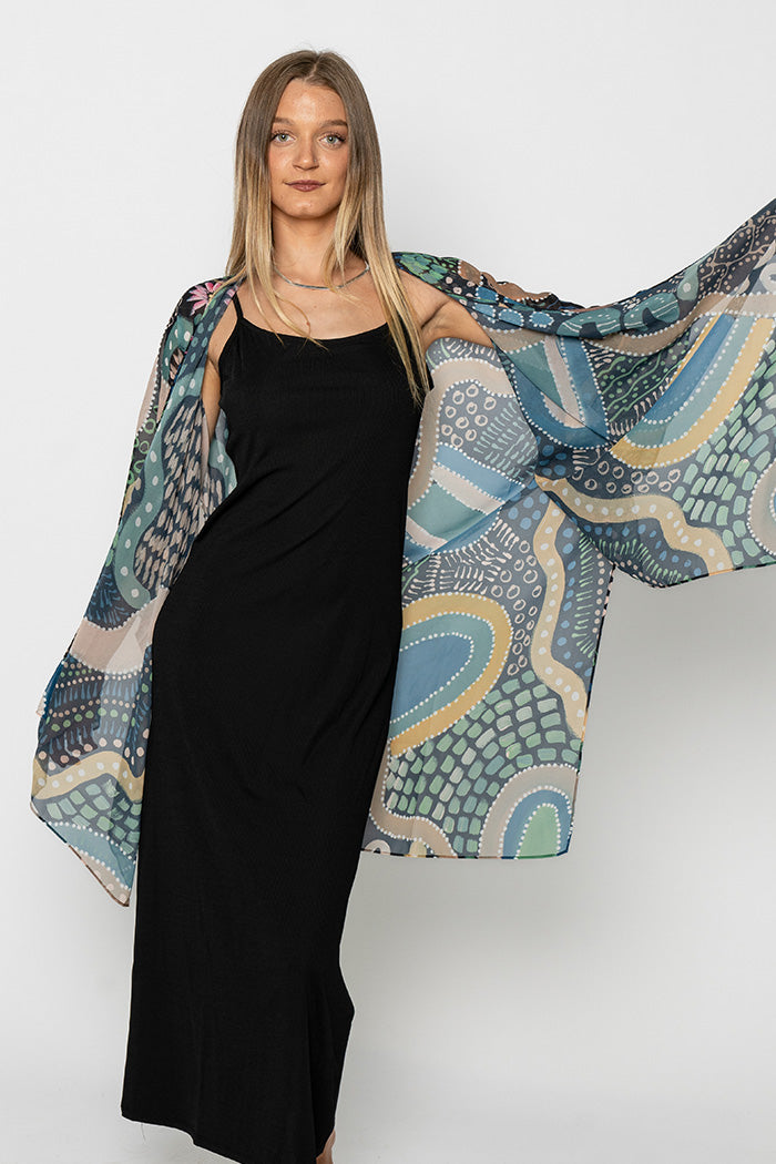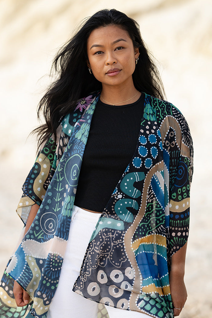 Featuring vibrant artwork from Caitlyn Davies-Plummer (Dustin-Koa Art), these shawls drape beautifully and add colour to your outfit without heaviness or bulk. Her latest release features a host of Home-inspired designs that reflect the soothing and uplifting role of art in her life, of 'feeling like home'.