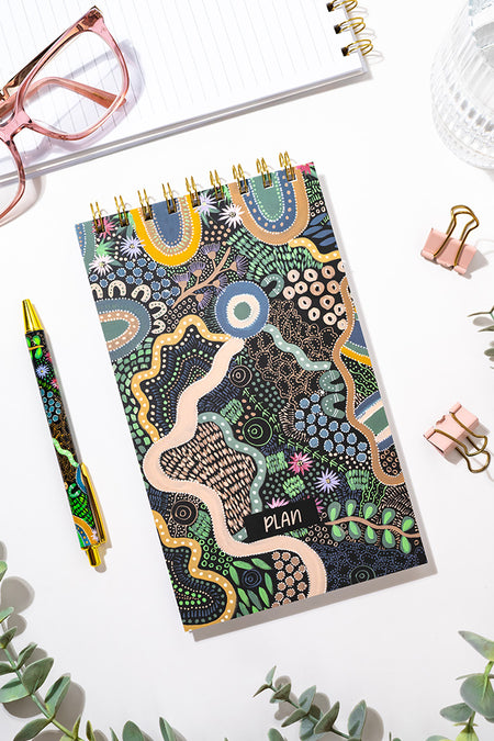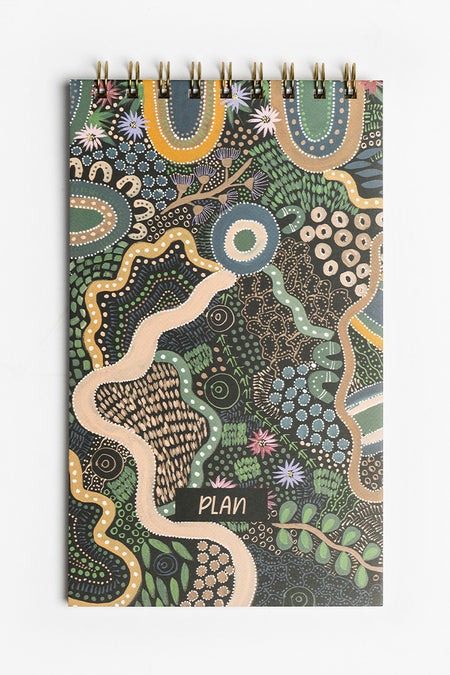 This practical notepad has a soft cover artwork design and a horizontal spiral spine to make for easy flipping and note taking. Available in a range of designs from First Nations artists, you're sure to find your favourite to add some beauty to your work or study.