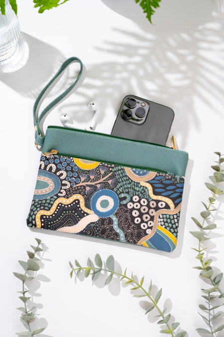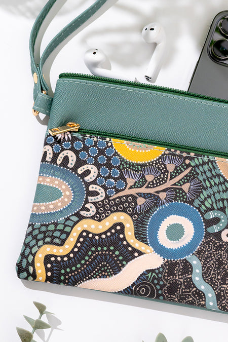 Add a touch of story and style to your day with this vibrant Zip Panel Purse, featuring beautiful artworks inspired by First Nations artists across Australia. Perfect for those who love unique accessories that celebrate meaning and creativity. Whether heading to the shops, the office, or a night out, this purse brings colour and story wherever you go.